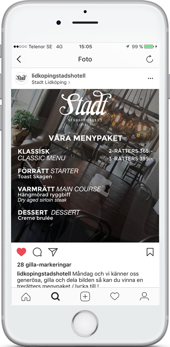 When i study “Operative Digital Communication” at “Campus Västra Skaraborg” i had my firs internship at “Stadt”, Stadt is a Hotel with a restaurant and a nightclub. My main job there was to create ads and varios content for their social media accounts.