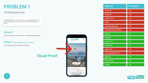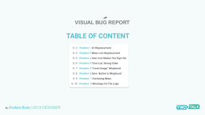 The first thing i did was to go through the design they had done so far and test it out. After some research about testing and how to report, i did a detailed testing and created and handed in a visual bug report i made. See pictures below